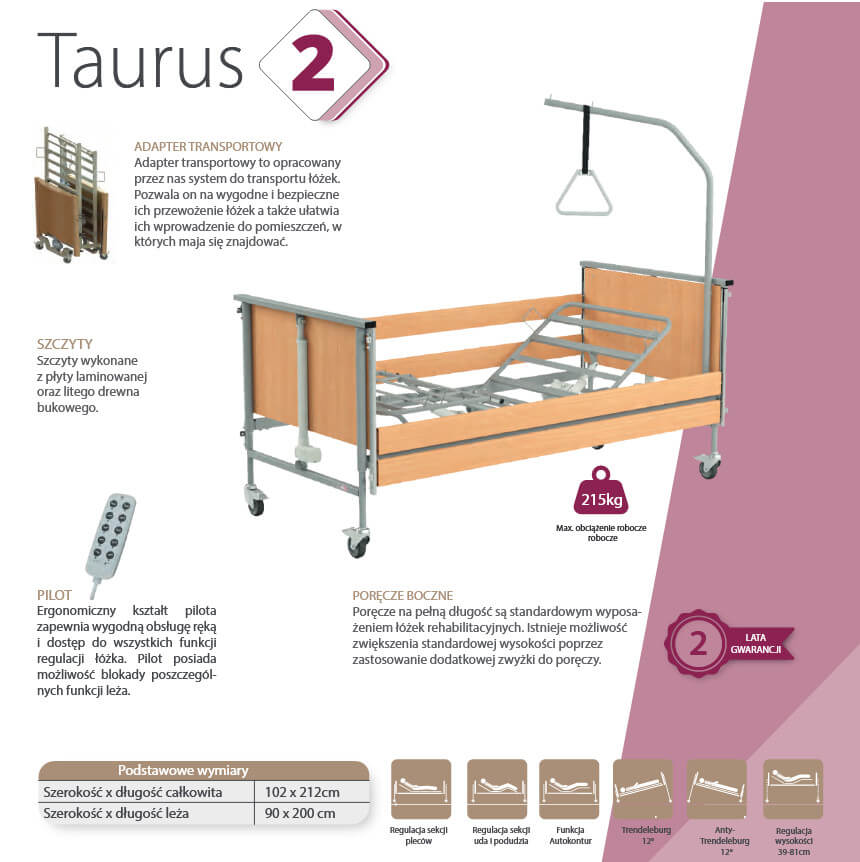Łóżko rehabilitacyjne, elektryczne TAURUS 2 lub TAURUS 2 LUX
