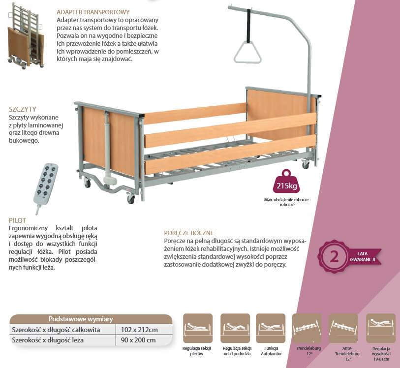 Łóżko rehabilitacyjne, elektryczne Taurus 2 LOW lub Taurus 2 LOW LUX